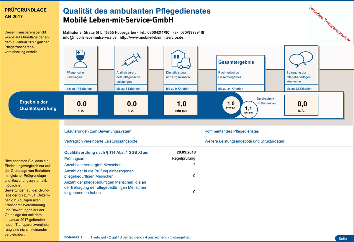 Wir freuen uns, dass unsere Bemühungen eine hohe Pflege- und Lebensqualität zu gewährleisten sowie unsere Mitarbeiter kontinuierlich zu qualifizieren und regelmäßig fortzubilden, auch in diesem Jahr wieder positiv bewertet wurde.